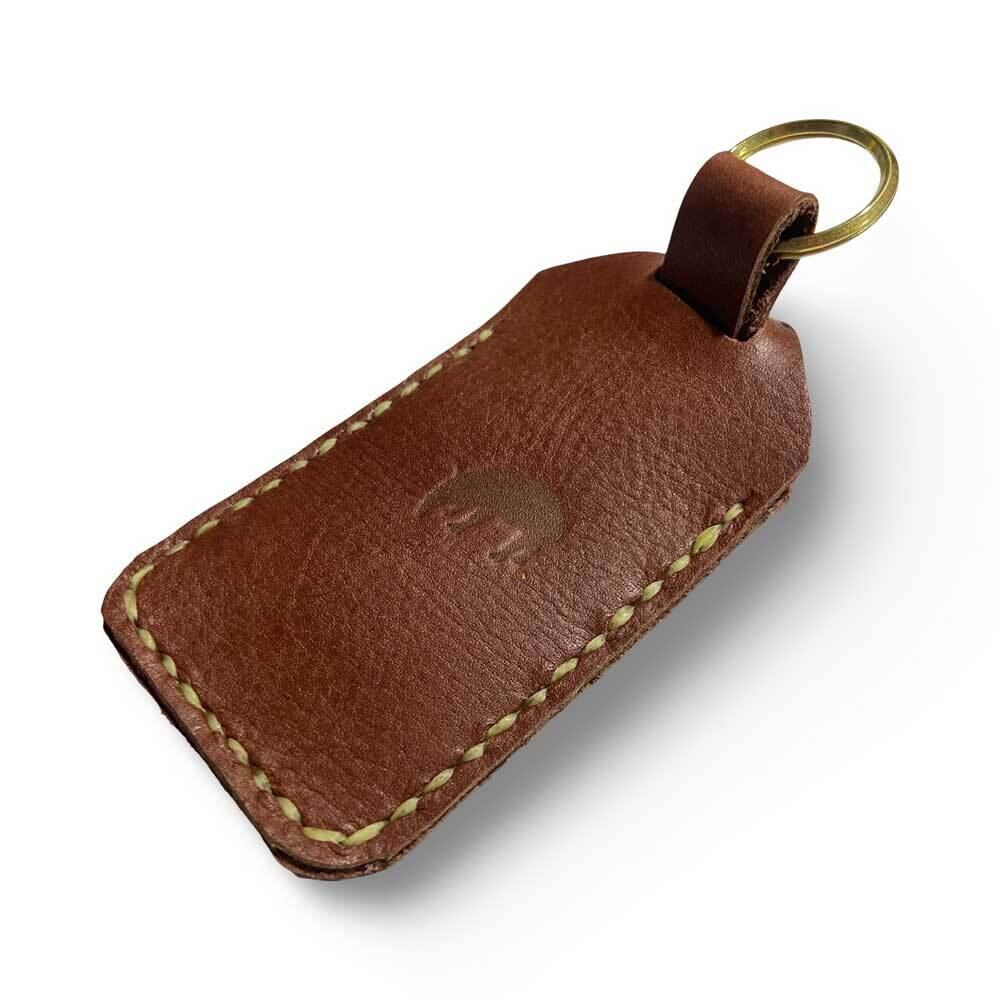 (素材)牛革。リングは真鍮製。糸は手縫い専用のシニュー糸を使っているので、不揃い感のある温もりのあるステッチになります。