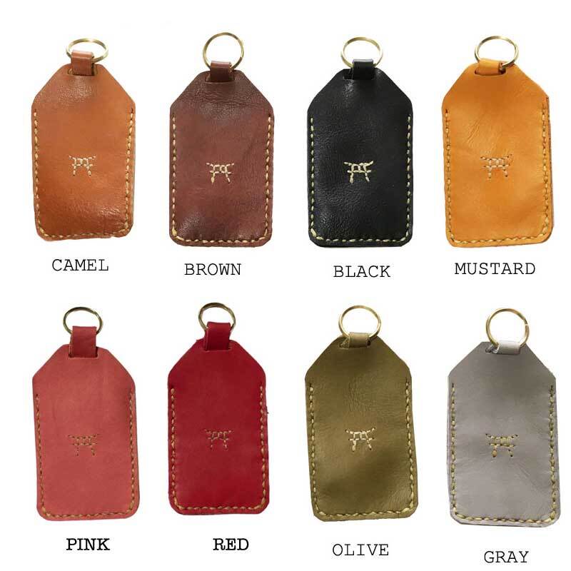 (素材)牛革。リングは真鍮製。糸は手縫い専用のシニュー糸を使っているので、不揃い感のある温もりのあるステッチになります。