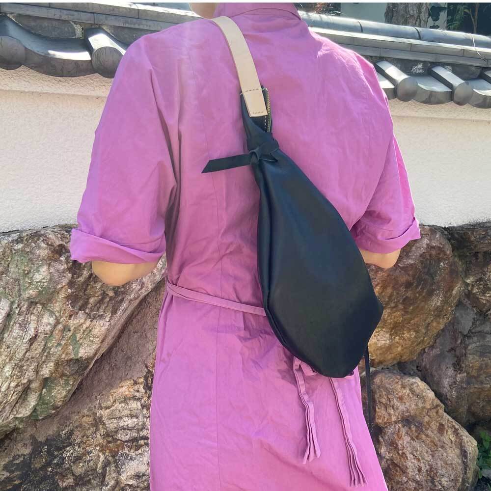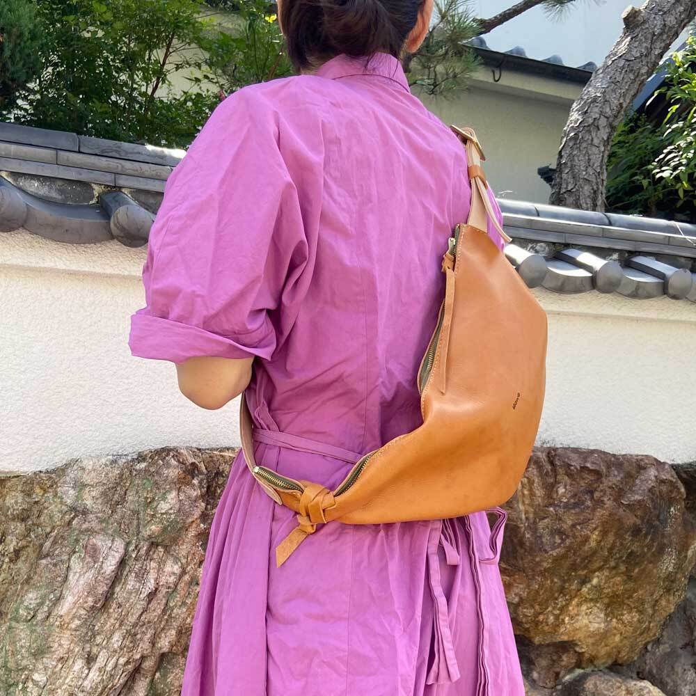 斜めがけすると 体にフィットする型になっています。