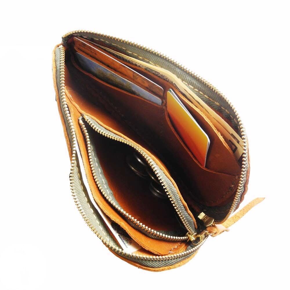 カードポケットの右側はカードを縦に入れるようになっていたり、コインケースも丸く大きく開く形になっていたりと、この形を最大限に生かして工夫されたデザイン。
