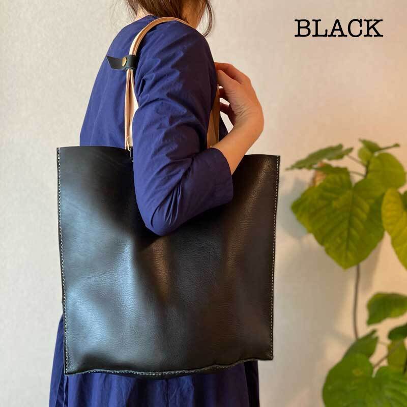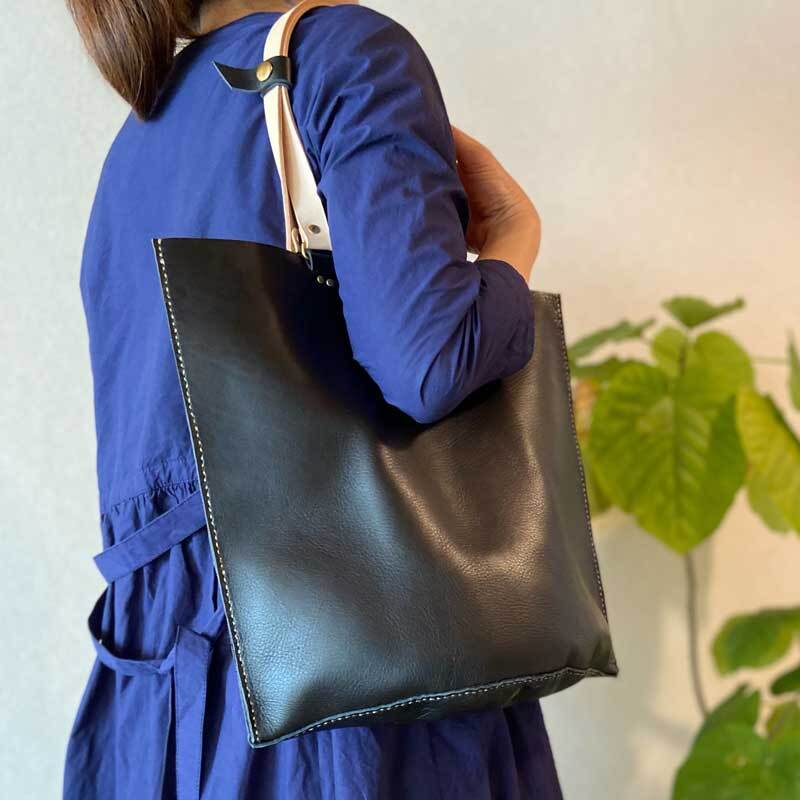 背面から繋がった底部が山型になっており、スッキリとしながらも個性的な形のトートバッグです。
