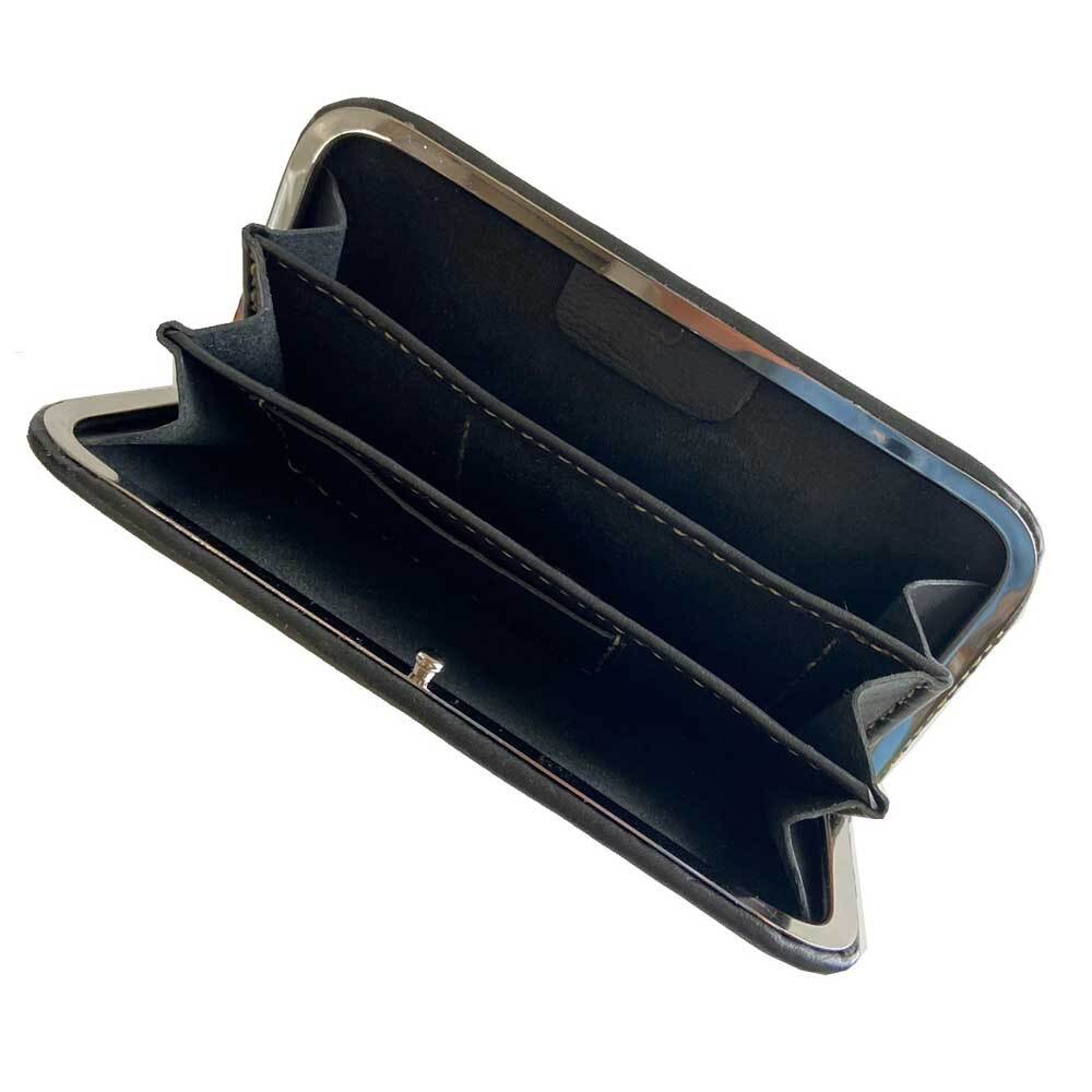 通常のガマグチと違い天溝という種類の金具を使用しており、一見してガマグチには見えないスッキリとした印象です。